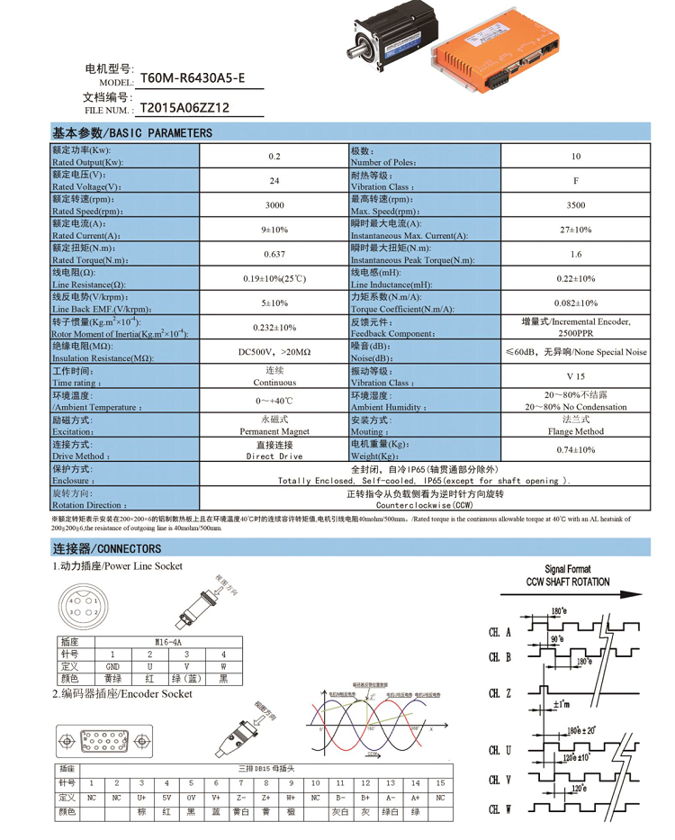 200W直流伺服電機(jī)T60M-R6430A5-E